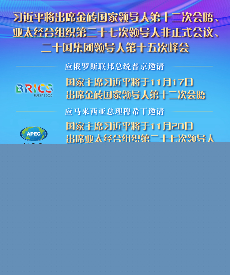 習近平將出席金磚國家領導人第十二次會晤、亞太經合組織第二十七次領導人非正式會議、二十國集團領導人第十五次峰會