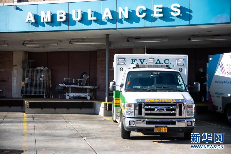 12月3日,在美國紐約,救護車停在一家醫院的急診室外。新華社發(郭克 攝)