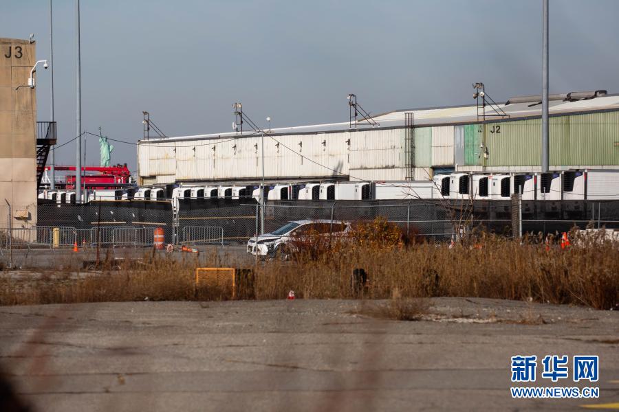 12月3日,在美國紐約,存放新冠病亡者尸體的冷藏車停放在一處臨時停尸場內。新華社發(郭克 攝)