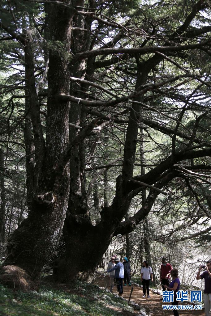 4月18日,游人在黎巴嫩巴魯克雪松保護區(qū)內游覽。